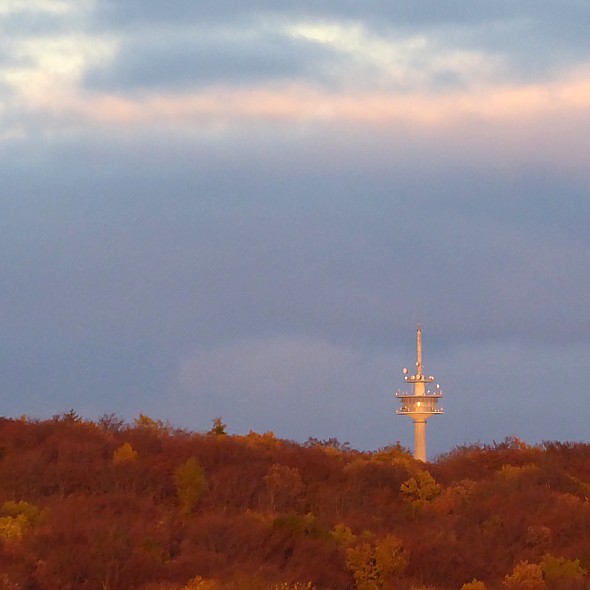 November 2016: Fernmeldeturm Atzelberg von Wiesbaden-Naurod aus herangezoomt