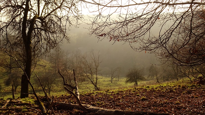 Oktober 2023: ein Grüppchen auseinanderfallender Gebückbäume bei Hausen v.d.H.;