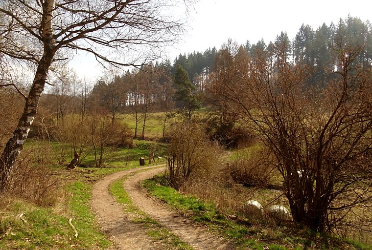 April 2016: Weg am Flurstück Rainchen hinab zum Wenzenrod (Wiesbaden-Rambach)